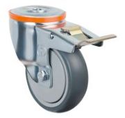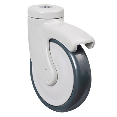 Аппаратное колесо EC04 MBT 125 предназначено для установки на медицинскую мебель, торговые тележки и другое передвижное оборудование, которое используется в условиях повышенных санитарных требований. Обод в модели изготовлен из прочного полипропилена, шинка — из серой резины. Диаметр колеса составляет 125 мм, максимальная нагрузка — 90 кг, температурный режим использования — от -20 до +60 °С .