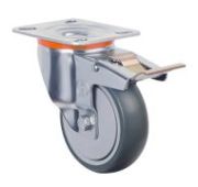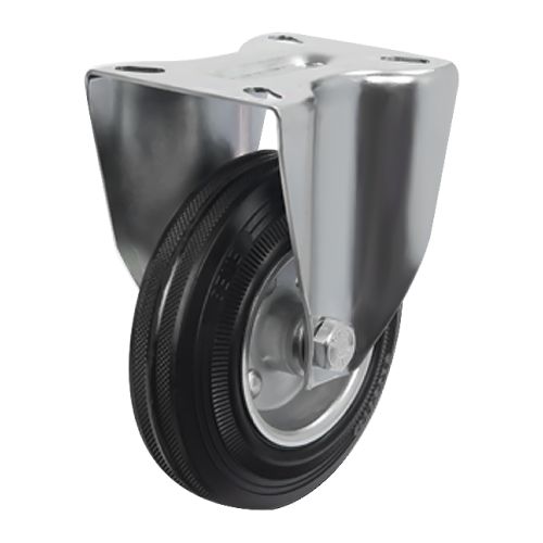 Грузоподъемность неповоротного промышленного колеса EM02SPR80 составляет 60 кг, диаметр — 80 мм. Контактный слой изготовлен из литой черной резины, обод и кронштейн — из оцинкованной стали. Роликовый подшипник в оси обладает высокой стойкостью к радиальным нагрузкам. Модель подходит для установки на различное складское и строительное оборудование, контейнеры ТБО, может использоваться на поверхностях с уклонами и неровностями, во влажной среде.