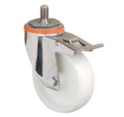 Колесная опора EMES EM04 ZKZ 125 (INOX) устанавливается на платформенные тележки для пищевой промышленности, передвижное медицинское оборудование и технику. Нейлоновый обод хорошо распределяет нагрузку. Поворотный кронштейн изготовлен из нержавеющей стали. Тип крепления — под болт. Максимальная грузоподъемность модели составляет 160 кг. Рабочий температурный диапазон — от -20 до +70 °С.