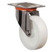 Поворотное большегрузное колесо EZ01HKZ150FINOX изготовлено из прочного нейлона, что обеспечивает стойкость к воздействию различных химических веществ и влаги, позволяет выдерживать высокие нагрузки без деформации. Максимальная грузоподъемность модели составляет 350 кг. Кронштейн из высококачественной нержавеющей стали устойчив к коррозии. Наличие тормозного механизма позволяет надежно фиксировать колесо в нужном положении во время остановки, что предотвращает его самопроизвольное вращение и повышает безопасность при работе с грузами.