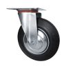 Колесо промышленное поворотное SС63 предназначено для мусорных контейнеров, промышленного оборудования, платформенных тележек, лесов и строительных вышек-тур. Шинка выполнена из литой, черной резины. Колесо имеет стальной оцинкованный обод. В оси установлен роликовый подшипник. Кронштейн с платформенным креплением изготовлен из оцинкованной стали. Отличается средней устойчивостью к воздействию химических веществ. Может передвигаться по грубой поверхности и эксплуатироваться в условиях влажной среды.