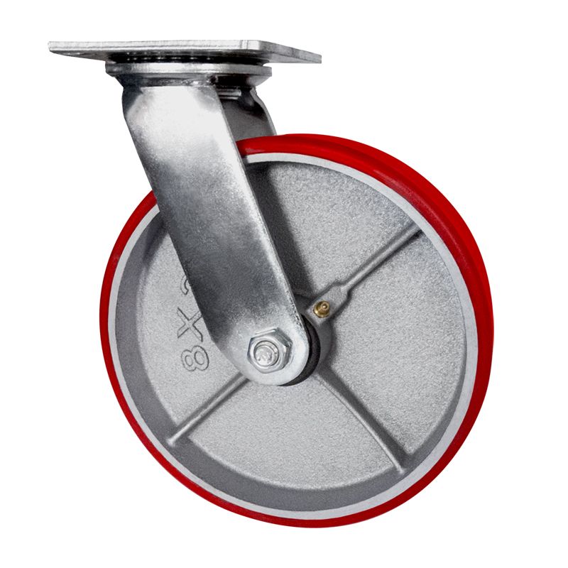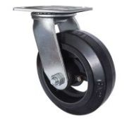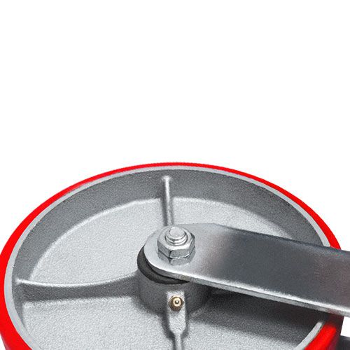 Колесо большегрузное полиуретановое поворотное SCP63 предназначено для оснащения складского, транспортного строительного оборудования и тяжелых механизмов. Шинка выполнена из полиуретана. Материал отличается высокой износостойкостью и большой грузоподъемностью. Колесо отлично переносит динамические, статические и ударные нагрузки, хорошо служит на любых твердых поверхностях. Обод выполнен из чугуна, оснащен роликовым подшипником в оси и смазочным ниппелем. В поворотном механизме установлен двухрядный шариковый подшипник с пресс-масленкой. Кронштейн — сварной, изготовлен из оцинкованной листовой стали. Диапазон температур — от -35ºC до +50ºC.