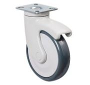 Колесо большегрузное полиуретановое поворотное SCP80 предназначено для оснащения складского, транспортного строительного оборудования и тяжелых механизмов. Шинка выполнена из полиуретана. Материал отличается высокой износостойкостью и большой грузоподъемностью. Колесо отлично переносит динамические, статические и ударные нагрузки, хорошо служит на любых твердых поверхностях. Обод выполнен из чугуна, оснащен роликовым подшипником в оси и смазочным ниппелем. В поворотном механизме установлен двухрядный шариковый подшипник с пресс-масленкой. Кронштейн — сварной, изготовлен из оцинкованной листовой стали. Диапазон температур — от -35ºC до +50ºC.