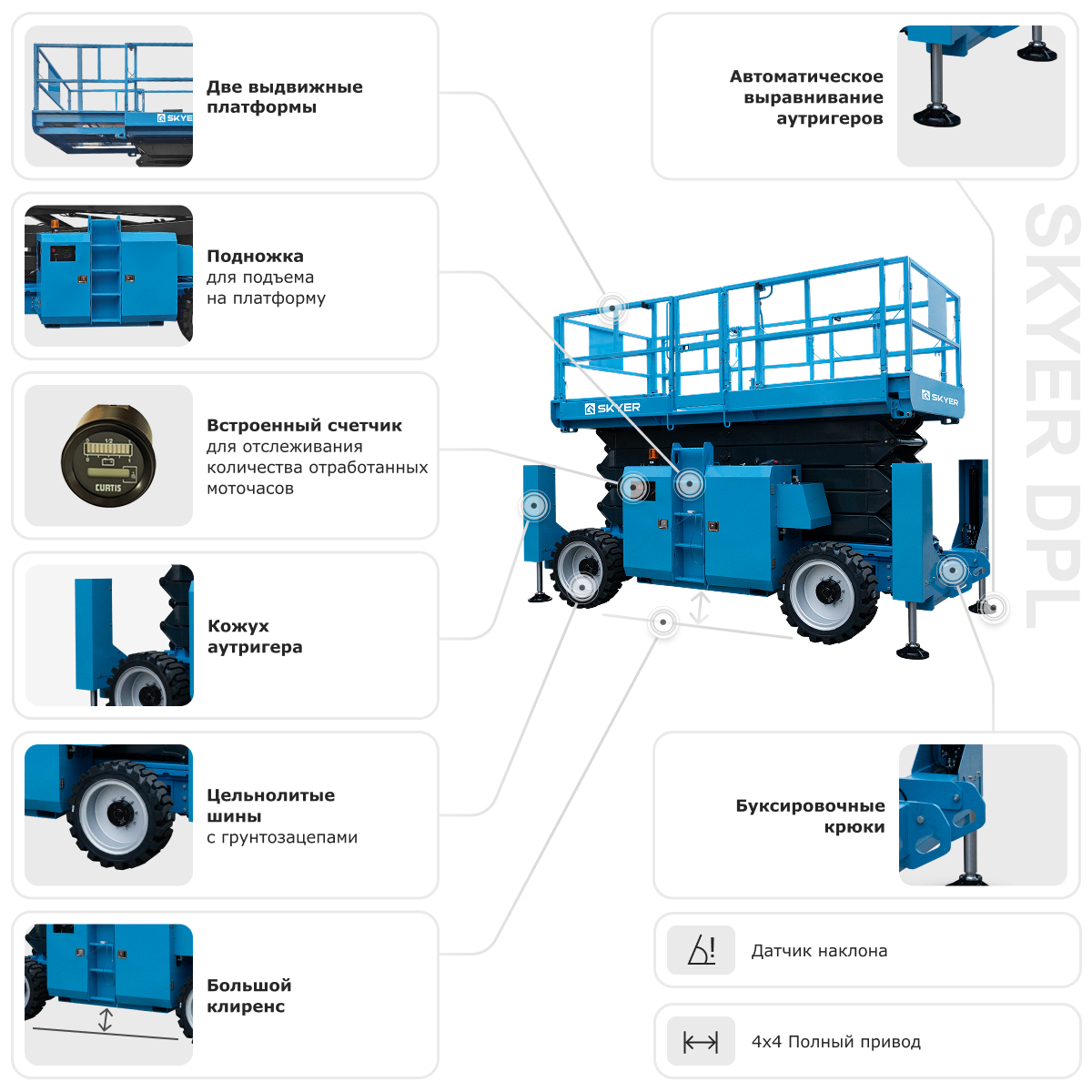 SKYER DPL1868 — профессиональное решение для самых сложных и масштабных высотных работ, где нужны максимальная грузоподъемность и автономность.