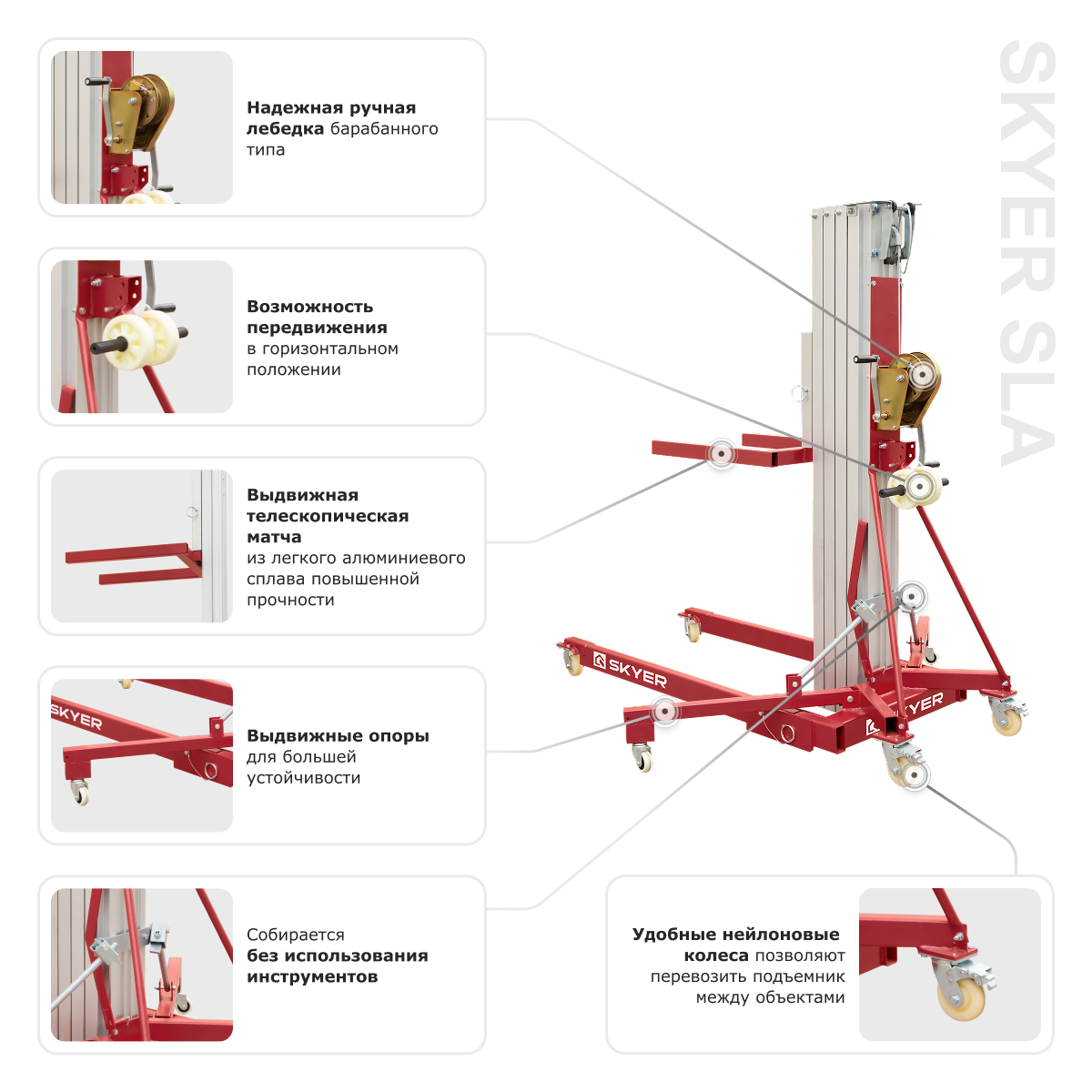 Телескопический подъемник для материалов SKYER SLA-10 — поднимет 400 кг без электричества!
