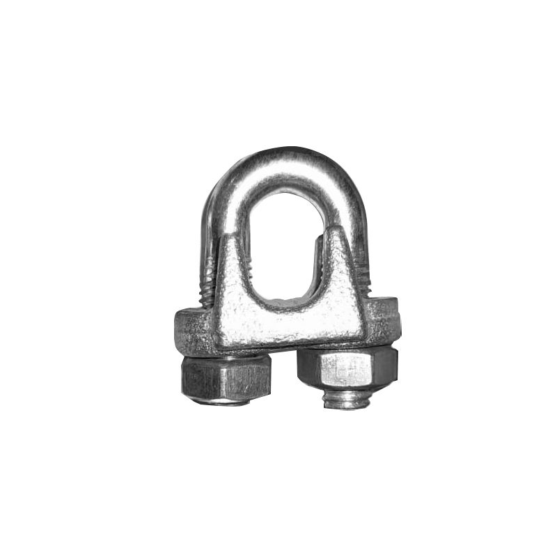 Зажим для каната – это крепежный элемент, который используется для соединения стальных канатов, для создания концевых соединений (петель). Деталь имеет подковообразную форму, на обоих концах нанесена резьба. Для крепления используются шестигранные гайки. Материал изготовления – оцинкованная высокопрочная сталь. Усиленные зажимы более прочные, их используют на грузоподъемном оборудовании. Рекомендуется использовать не меньше трех зажимов в одном соединении.